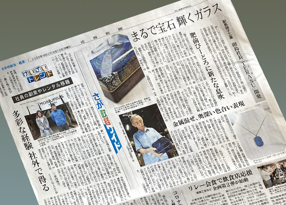 吹きガラスの中に特殊な金属を入れて成形していく新たな商品「TERASU」の商品開発について掲載して頂きました。